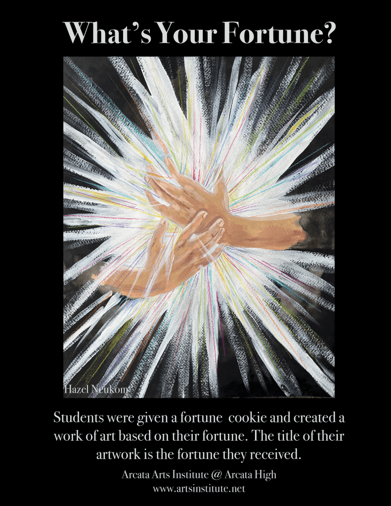 Arcata Arts Institute is exhibiting a collection of 36 pieces from a collection called “What’s Your Fortune?” Students were given a fortune cookie and created a work of art based off their fortune. The title of their artwork is the fortune they received.